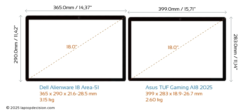 SD Card Reader Alienware 18 Area-51 is equipped with an SD Card Reader for easy access to memory cards. TUF Gaming A18 2025 does not have an SD Card Reader.