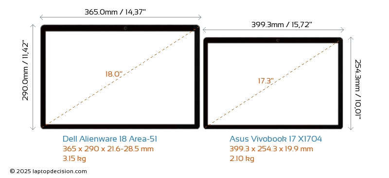 Thunderbolt Alienware 18 Area-51 is equipped with Thunderbolt 5 port. Vivobook 17 X1704 does not have Thunderbolt port.