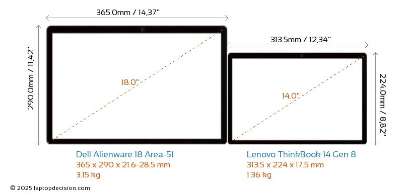 Audio JackBoth Alienware 18 Area-51 and ThinkBook 14 Gen 8 are equipped with a 3.5mm Audio Jack, providing seamless connection to headphones and speakers.