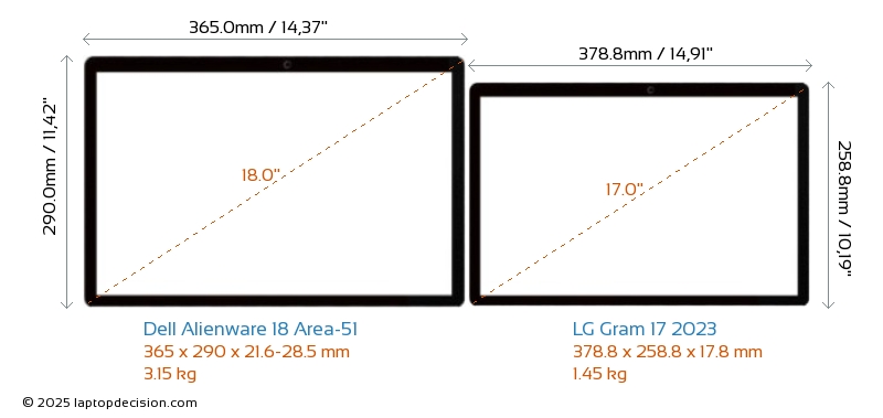 HDMIBoth Alienware 18 Area-51 and Gram 17 2023 feature an HDMI port. Alienware 18 Area-51 offers 1x HDMI 2.1, while Gram 17 2023 offers 1x HDMI 2.0.