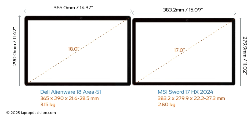 Thunderbolt Alienware 18 Area-51 is equipped with Thunderbolt 5 port. Sword 17 HX 2024 does not have Thunderbolt port.