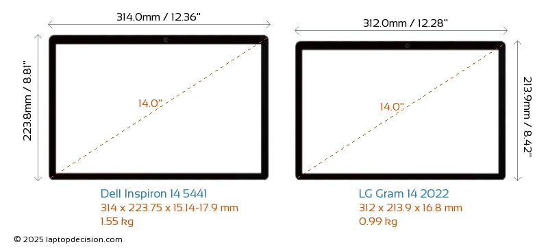 USBBoth Inspiron 14 5441 and Gram 14 2022 have USB-A ports. Inspiron 14 5441 has 1x USB 3.2 USB-A ports, while Gram 14 2022 has 2x USB 3.2 USB-A ports.Both Inspiron 14 5441 and Gram 14 2022 have USB Type-C ports. Inspiron 14 5441 has 2x USB 3.2 USB Type-C ports, while Gram 14 2022 has 2x USB 4.0 USB Type-C ports.