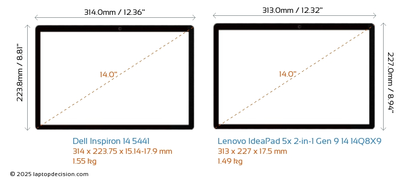 Audio JackBoth Inspiron 14 5441 and IdeaPad 5x 2-in-1 Gen 9 14 14Q8X9 are equipped with a 3.5mm Audio Jack, providing seamless connection to headphones and speakers.