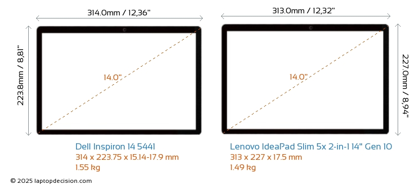 ThunderboltNeither Inspiron 14 5441 nor IdeaPad Slim 5x 2-in-1 14" Gen 10 has Thunderbolt port.