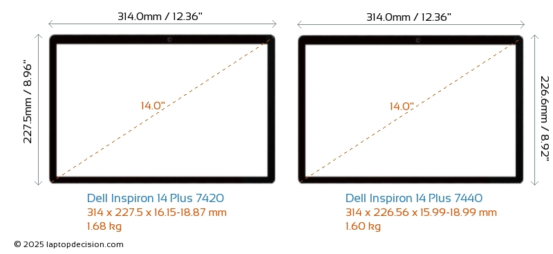 HDMIBoth Inspiron 14 Plus 7420 and Inspiron 14 Plus 7440 feature an HDMI port. Inspiron 14 Plus 7420 offers 1x HDMI 2.0, while Inspiron 14 Plus 7440 offers 1x HDMI 1.4.