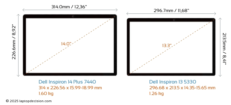 USBBoth Inspiron 14 Plus 7440 and Inspiron 13 5330 have USB-A ports. Inspiron 14 Plus 7440 has 2x USB 3.2 USB-A ports, while Inspiron 13 5330 has 1x USB 3.2 USB-A ports.Both Inspiron 14 Plus 7440 and Inspiron 13 5330 have USB Type-C ports. Inspiron 14 Plus 7440 has 1x USB 4.0 USB Type-C ports, while Inspiron 13 5330 has 2x USB 3.2 USB Type-C ports.