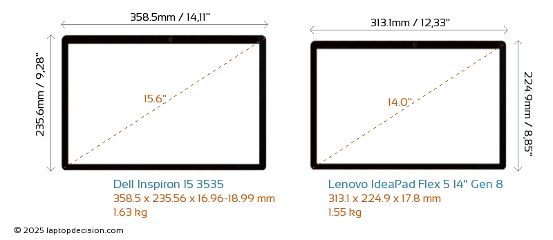 Audio JackBoth Inspiron 15 3535 and IdeaPad Flex 5 14" Gen 8 are equipped with a 3.5mm Audio Jack, providing seamless connection to headphones and speakers.