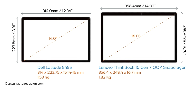 HDMIBoth Latitude 5455 and ThinkBook 16 Gen 7 QOY Snapdragon feature an HDMI port (1x HDMI 2.1) for connecting to external monitors.