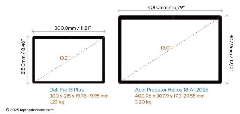 SD Card Reader Predator Helios 18 AI 2025 is equipped with an SD Card Reader for easy access to memory cards. Pro 13 Plus does not have an SD Card Reader.
