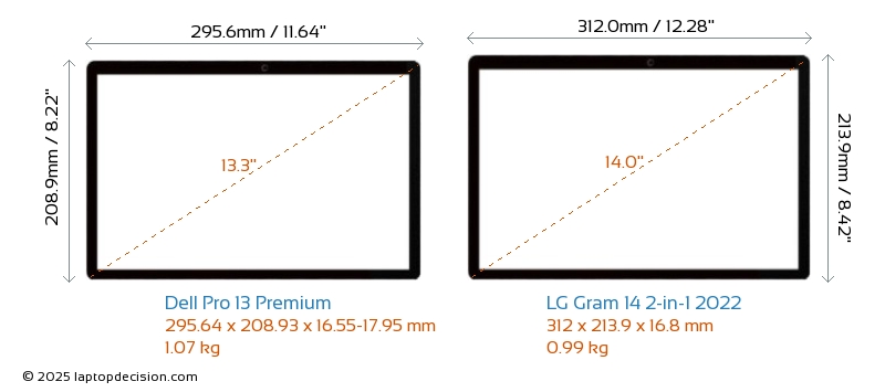 HDMIBoth Pro 13 Premium and Gram 14 2-in-1 2022 feature an HDMI port. Pro 13 Premium offers 1x HDMI 2.1, while Gram 14 2-in-1 2022 offers 1x HDMI 2.0.