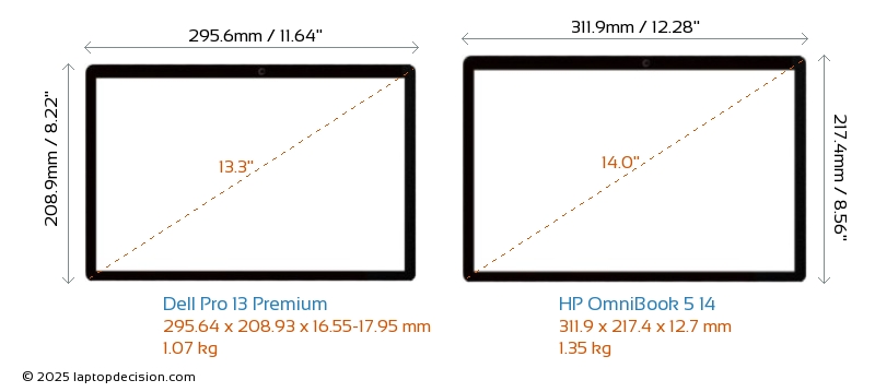 HDMI Pro 13 Premium features an HDMI port (1x HDMI 2.1) for connecting to external monitors. OmniBook 5 14 does not have an HDMI port.