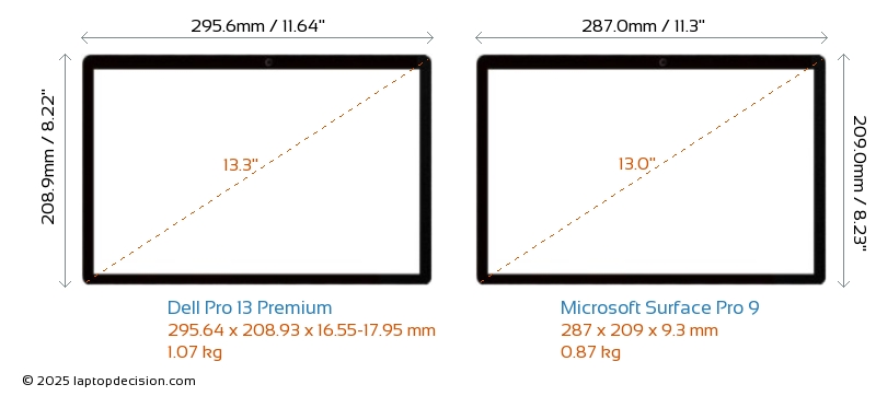 HDMI Pro 13 Premium features an HDMI port (1x HDMI 2.1) for connecting to external monitors. Surface Pro 9 does not have an HDMI port.