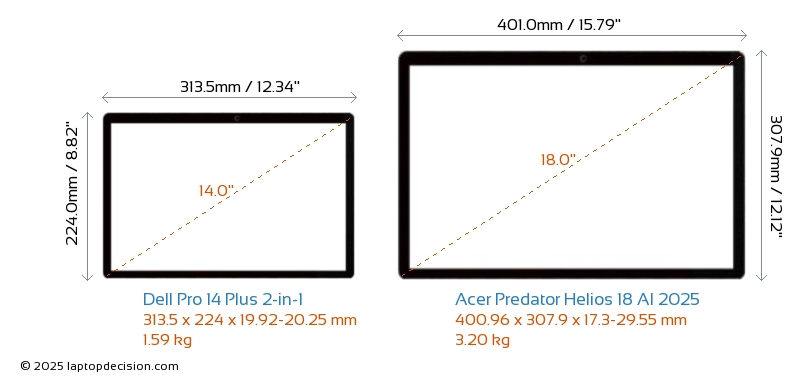 SD Card Reader Predator Helios 18 AI 2025 is equipped with an SD Card Reader for easy access to memory cards. Pro 14 Plus 2-in-1 does not have an SD Card Reader.