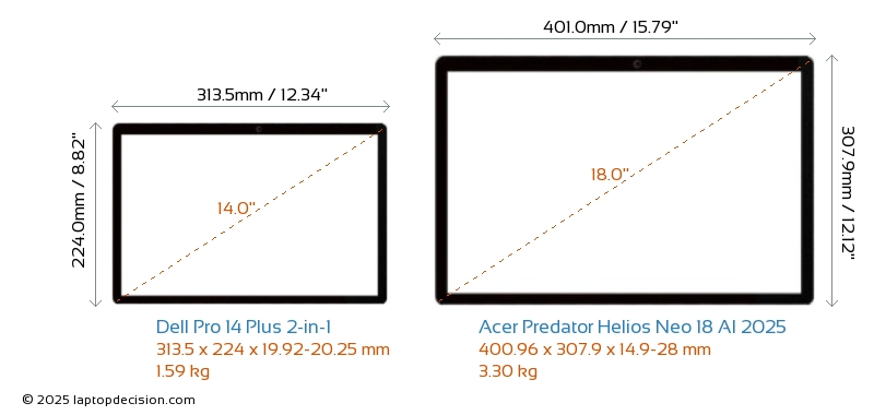 USBBoth Pro 14 Plus 2-in-1 and Predator Helios Neo 18 AI 2025 have USB-A ports. Pro 14 Plus 2-in-1 has 2x USB 3.2 USB-A ports, while Predator Helios Neo 18 AI 2025 has 4x USB 3.2 USB-A ports.Both Pro 14 Plus 2-in-1 and Predator Helios Neo 18 AI 2025 feature 2x USB 4.0 USB Type-C ports.