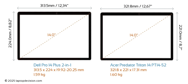ThunderboltBoth Pro 14 Plus 2-in-1 and Predator Triton 14 PT14-52 are equipped with Thunderbolt 4 ports.
