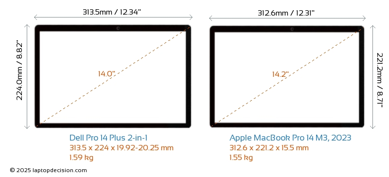 HDMIBoth Pro 14 Plus 2-in-1 and MacBook Pro 14 M3, 2023 feature an HDMI port (1x HDMI 2.1) for connecting to external monitors.