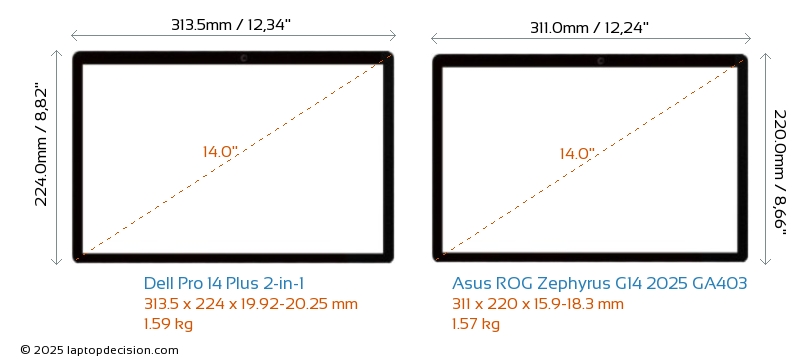 USBBoth Pro 14 Plus 2-in-1 and ROG Zephyrus G14 2025 GA403 feature 2x USB 3.2 USB-A ports.Both Pro 14 Plus 2-in-1 and ROG Zephyrus G14 2025 GA403 feature 2x USB 4.0 USB Type-C ports.