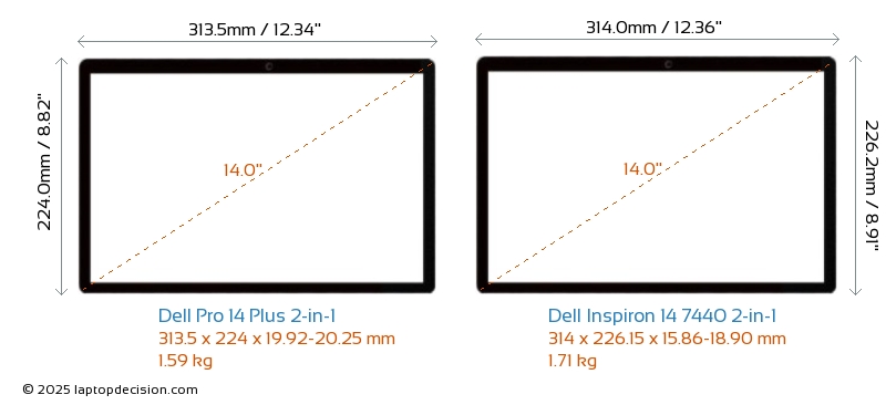 HDMIBoth Pro 14 Plus 2-in-1 and Inspiron 14 7440 2-in-1 feature an HDMI port. Pro 14 Plus 2-in-1 offers 1x HDMI 2.1, while Inspiron 14 7440 2-in-1 offers 1x HDMI 1.4.