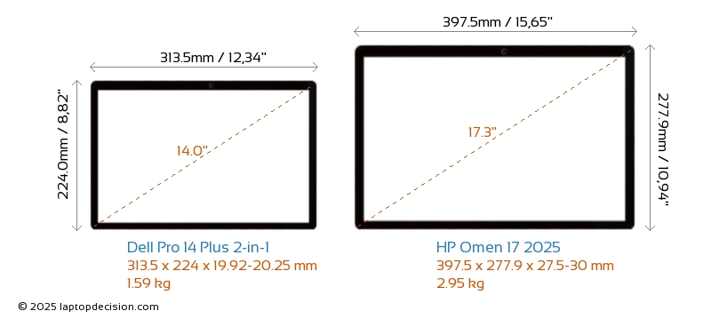 USBBoth Pro 14 Plus 2-in-1 and Omen 17 2025 have USB-A ports. Pro 14 Plus 2-in-1 has 2x USB 3.2 USB-A ports, while Omen 17 2025 has 3x USB 3.2 USB-A ports.Both Pro 14 Plus 2-in-1 and Omen 17 2025 have USB Type-C ports. Pro 14 Plus 2-in-1 has 2x USB 4.0 USB Type-C ports, while Omen 17 2025 has 1x USB 3.2 USB Type-C ports.