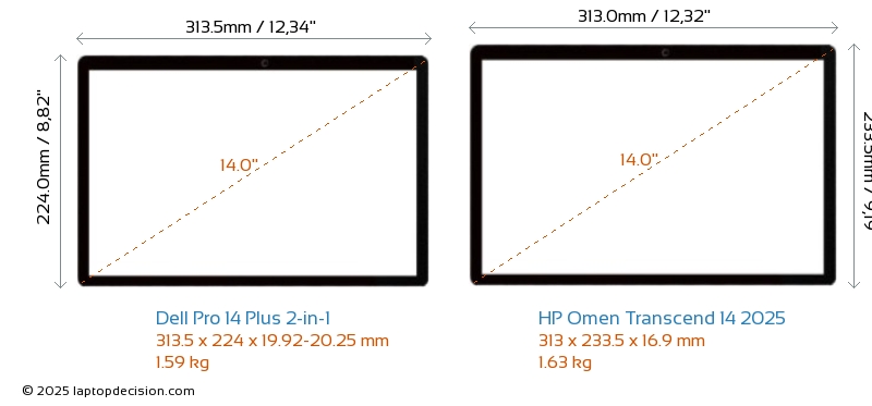 USBBoth Pro 14 Plus 2-in-1 and Omen Transcend 14 2025 feature 2x USB 3.2 USB-A ports.Both Pro 14 Plus 2-in-1 and Omen Transcend 14 2025 feature 2x USB 4.0 USB Type-C ports.