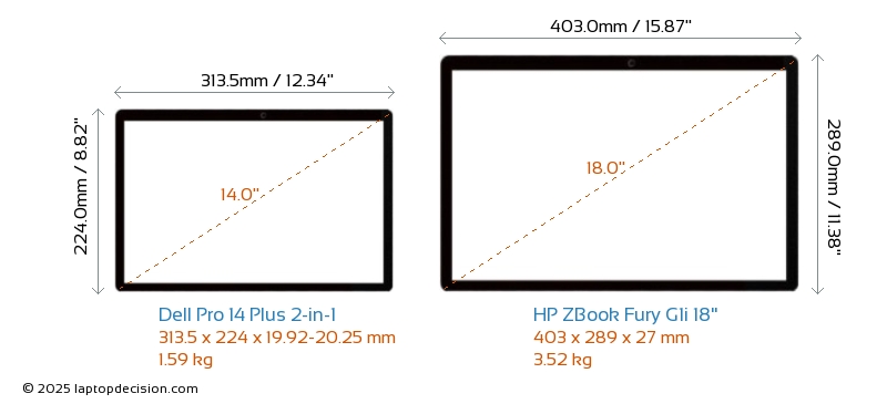 SD Card Reader ZBook Fury G1i 18" is equipped with an SD Card Reader for easy access to memory cards. Pro 14 Plus 2-in-1 does not have an SD Card Reader.