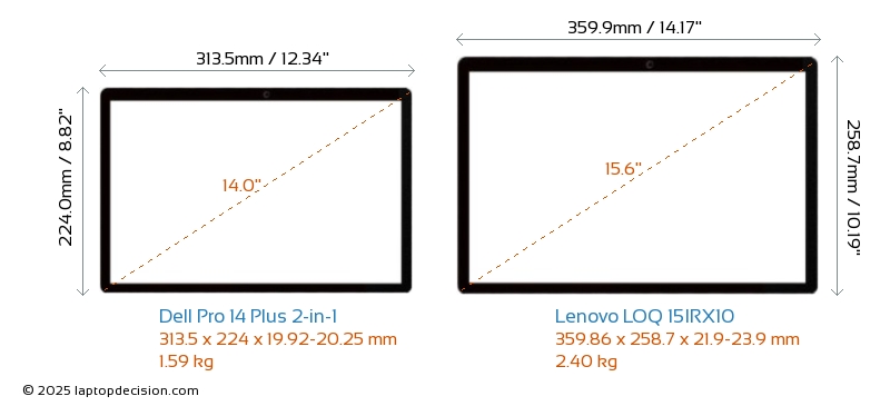 USBBoth Pro 14 Plus 2-in-1 and LOQ 15IRX10 have USB-A ports. Pro 14 Plus 2-in-1 has 2x USB 3.2 USB-A ports, while LOQ 15IRX10 has 3x USB 3.2 USB-A ports.Both Pro 14 Plus 2-in-1 and LOQ 15IRX10 have USB Type-C ports. Pro 14 Plus 2-in-1 has 2x USB 4.0 USB Type-C ports, while LOQ 15IRX10 has 1x USB 3.2 USB Type-C ports.