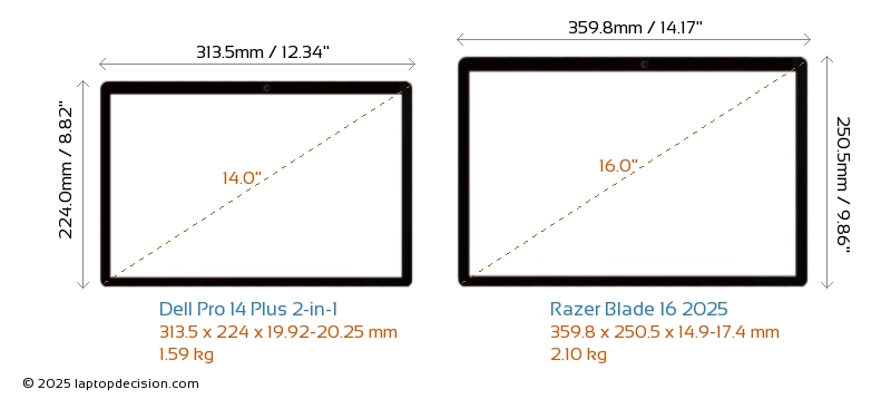 USBBoth Pro 14 Plus 2-in-1 and Blade 16 2025 have USB-A ports. Pro 14 Plus 2-in-1 has 2x USB 3.2 USB-A ports, while Blade 16 2025 has 3x USB 3.2 USB-A ports.Both Pro 14 Plus 2-in-1 and Blade 16 2025 feature 2x USB 4.0 USB Type-C ports.