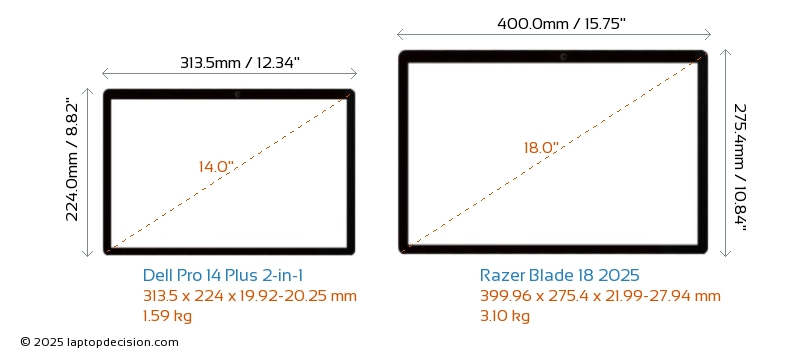 USBBoth Pro 14 Plus 2-in-1 and Blade 18 2025 have USB-A ports. Pro 14 Plus 2-in-1 has 2x USB 3.2 USB-A ports, while Blade 18 2025 has 3x USB 3.2 USB-A ports.Both Pro 14 Plus 2-in-1 and Blade 18 2025 feature 2x USB 4.0 USB Type-C ports.