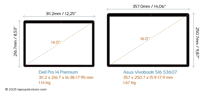 Thunderbolt Pro 14 Premium is equipped with Thunderbolt 4 port. Vivobook S16 S3607 does not have Thunderbolt port.
