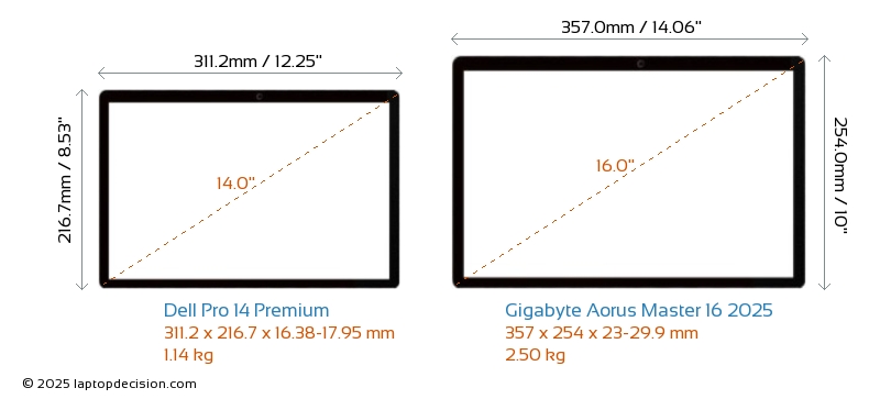SD Card Reader Aorus Master 16 2025 is equipped with an SD Card Reader for easy access to memory cards. Pro 14 Premium does not have an SD Card Reader.