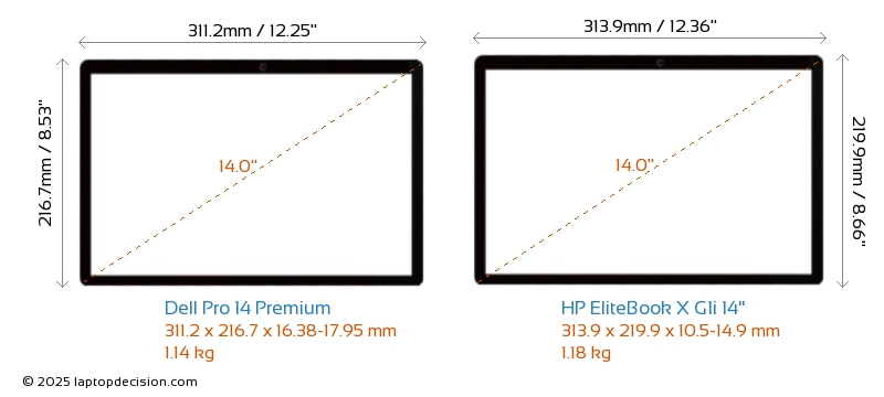 HDMIBoth Pro 14 Premium and EliteBook X G1i 14" feature an HDMI port (1x HDMI 2.1) for connecting to external monitors.