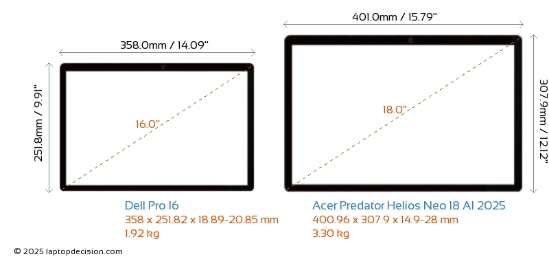Wifi Pro 16 features a more advanced Wi-Fi standard v7, providing faster and more reliable wireless connections compared to Predator Helios Neo 18 AI 2025 (v6E).