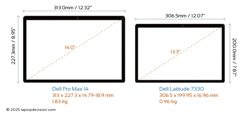 HDMIBoth Pro Max 14 and Latitude 7330 feature an HDMI port. Pro Max 14 offers 1x HDMI 2.1, while Latitude 7330 offers 1x HDMI 2.0.