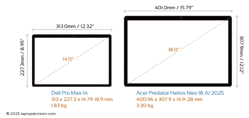 HDMIBoth Pro Max 14 and Predator Helios Neo 18 AI 2025 feature an HDMI port (1x HDMI 2.1) for connecting to external monitors.