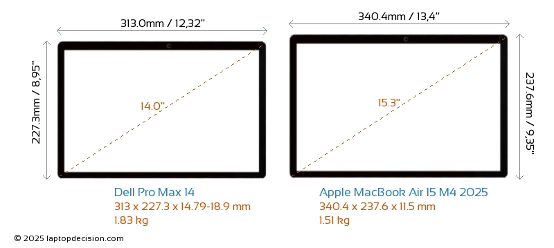 USB Pro Max 14 is equipped with 2x USB 3.2 USB-A ports. MacBook Air 15 M4 2025 does not have USB-A ports.Both Pro Max 14 and MacBook Air 15 M4 2025 feature 2x USB 4.0 USB Type-C ports.