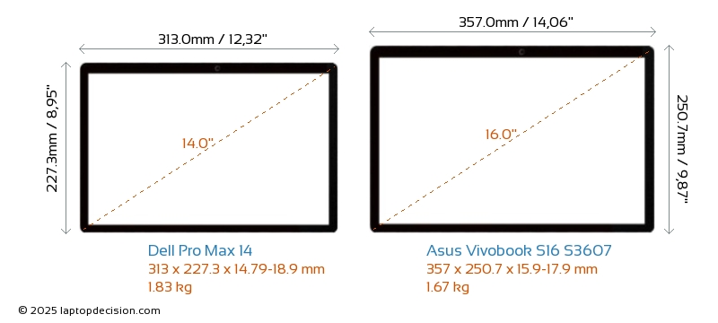 HDMIBoth Pro Max 14 and Vivobook S16 S3607 feature an HDMI port (1x HDMI 2.1) for connecting to external monitors.