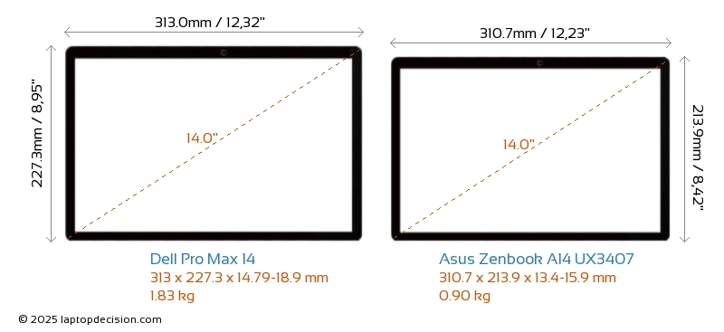 ThunderboltBoth Pro Max 14 and Zenbook A14 UX3407 are equipped with Thunderbolt 4 ports.