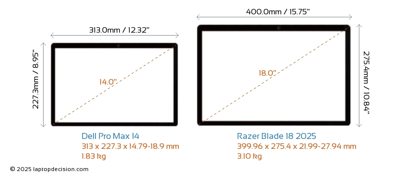 ThunderboltBoth Pro Max 14 and Blade 18 2025 feature Thunderbolt ports. Pro Max 14 has Thunderbolt 4, while Blade 18 2025 has Thunderbolt 5.