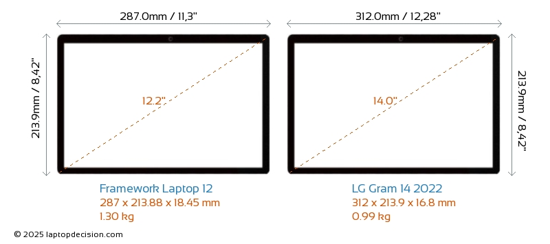 HDMIBoth Laptop 12 and Gram 14 2022 feature an HDMI port. Laptop 12 offers 4x HDMI 2.0, while Gram 14 2022 offers 1x HDMI 2.0.