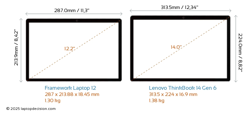 HDMIBoth Laptop 12 and ThinkBook 14 Gen 6 feature an HDMI port. Laptop 12 offers 4x HDMI 2.0, while ThinkBook 14 Gen 6 offers 1x HDMI 2.1.
