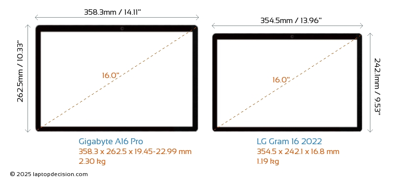 HDMIBoth A16 Pro and Gram 16 2022 feature an HDMI port. A16 Pro offers 1x HDMI 2.1, while Gram 16 2022 offers 1x HDMI 2.0.