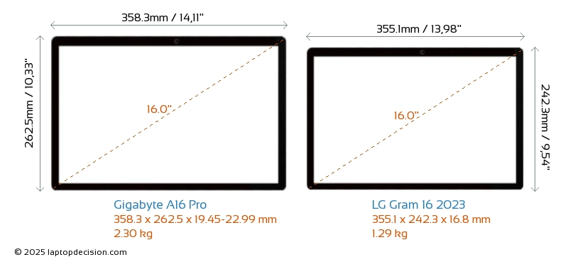 Audio JackBoth A16 Pro and Gram 16 2023 are equipped with a 3.5mm Audio Jack, providing seamless connection to headphones and speakers.