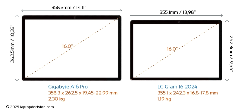 HDMIBoth A16 Pro and Gram 16 2024 feature an HDMI port (1x HDMI 2.1) for connecting to external monitors.