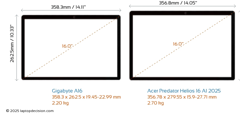 HDMIBoth A16 and Predator Helios 16 AI 2025 feature an HDMI port (1x HDMI 2.1) for connecting to external monitors.