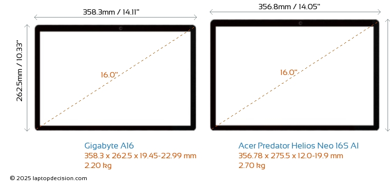 HDMIBoth A16 and Predator Helios Neo 16S AI feature an HDMI port (1x HDMI 2.1) for connecting to external monitors.