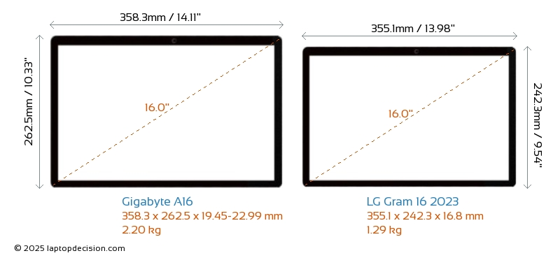 HDMIBoth A16 and Gram 16 2023 feature an HDMI port. A16 offers 1x HDMI 2.1, while Gram 16 2023 offers 1x HDMI 2.0.