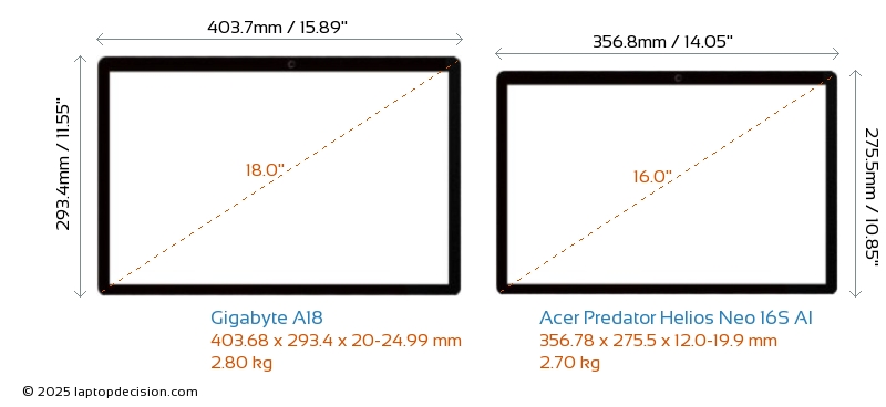 HDMIBoth A18 and Predator Helios Neo 16S AI feature an HDMI port (1x HDMI 2.1) for connecting to external monitors.