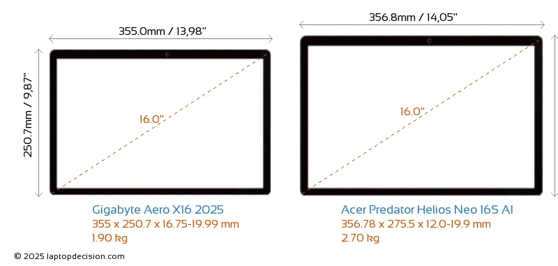 HDMIBoth Aero X16 2025 and Predator Helios Neo 16S AI feature an HDMI port (1x HDMI 2.1) for connecting to external monitors.