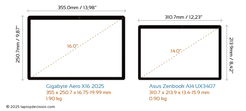 Wifi Zenbook A14 UX3407 features a more advanced Wi-Fi standard v7, providing faster and more reliable wireless connections compared to Aero X16 2025 (v6E).