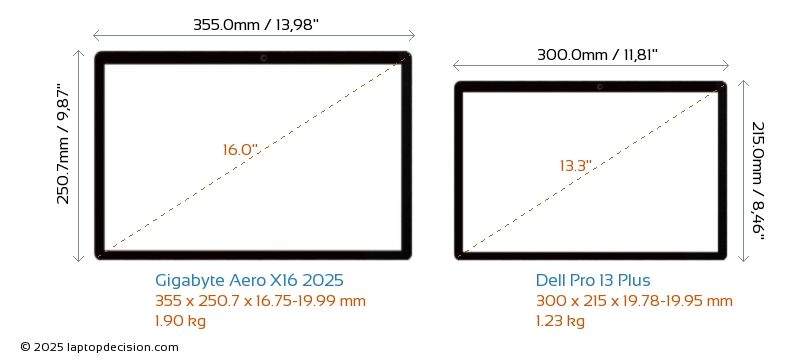 Wifi Pro 13 Plus features a more advanced Wi-Fi standard v7, providing faster and more reliable wireless connections compared to Aero X16 2025 (v6E).